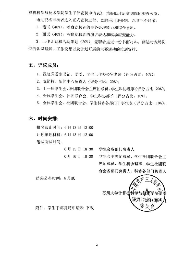 6月13日 12:00前进行报名和资格审核,有意参选的同学填写纸质的《麻豆视频 学生干部竞聘申请表》,填好照片后交到院团委办公室。