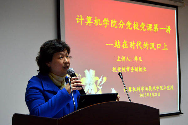| 4月21日晚上,麻豆视频 分党校在理工楼504开展党课培训。党课由校党校常务副校长薛凡主讲,主题为“站在时代的风口上”。学院全体辅导员、参加培训的全体入党积极分子和预备党员认真聆听了讲座。党课由院党委副书记、副院长沈云彩主持。 薛凡老师首先以时代的风口作为切入点,希望同学们要深入了解社会主义核心价值观的内涵和意义,在思想上更要契合社会的主流价值观和核心思想,与时俱进。薛凡老师从思想性、行动力两个维度出发,详细分析了中国共产党所具备的优秀特质,同时以十八大提出的实施创新驱动发展战略为例,指出实施创新驱动发展战略是适应世界科技革命和迎接竞争挑战的必然选择,进一步解放思想,加快科技体制改革步伐,打通从科技强到产业强、经济强、国家强的通道,为国家强盛、民族复兴提供有力的科技支撑和动力源泉。她希望同学们“站在时代的风口上”,要结合计算机学院的专业特色,培养较强的专业前瞻性。 薛凡老师立足于同学们的学习生活实际,分析了国际互联网的飞速发展给我们带来的便捷。在O2O等线上线下模式飞速发展的今天,互联网可以帮助我们跟随、关注到任何个体或对象,在学习、科研等方面提供强有力的支撑。她重点介绍了闭环理论,外环是what,即对事物要有一定的认知度;中间是how,明白如何去完成一件事;中心部分最深层的是why,即某件事物的根本意义、如何去完成。这一理论引发了学员们的思考。 最后薛凡老师阐述了习近平“一带一路”——“丝绸之路经济带”和“21世纪海上丝绸之路”的战略构想,这一跨越时空的宏伟构想,承接古今,借用古代“丝绸之路”的历史符号,高举和平发展的旗帜,主动地发展与沿线国家的经济合作伙伴关系,共同打造政治互信、经济融合、文化包容的利益共同体、命运共同体和责任共同体。“一带一路”传承了古丝绸之路精神,又顺应和平、发展、合作、共赢的21世纪时代潮流,将“中国梦”与“世界梦”进行有机地衔接,具有深远的战略意义和全球性影响力。 薛校长的整个党课围绕时代风口的主题,思想性和行动力贯穿始终。在座学员都纷纷表示受到了很大启发,通过党课加深了对党的政策和理论知识的理解,提升了思想层次,增强了党性修养。 |