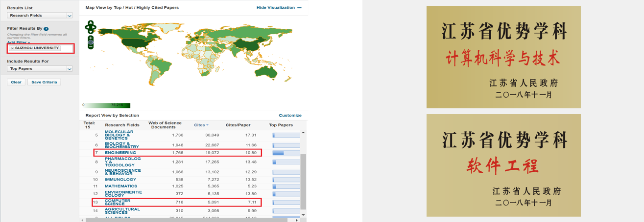 学院现有软件工程、计算机科学与技术两个江苏省优势学科,全部进入ESI全球排名前1%,2018年获批江苏省优势学科,年均学科建设经费1690万/年;软件工程学科在全国第四轮学科评估中获得A-评估成绩,与国内多所知名高校并列全国第九名。
