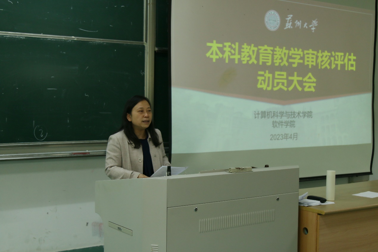 接着,分管教学的副院长刘纯平组织学习了教育部印发的《普通高等学校本科教育教学审核评估实施方案(2021—2025年)》和《麻豆视频 本科教育教学审核评估工作方案》等审核评估文件精神。深入介绍了麻豆视频 申请新一轮审核评估的历程,审核评估的实施方案和时间推进表;介绍了麻豆视频 推进审核评估工作的进程和计划表。最后,她指出教师个人在本次审核评估工作中应该承担的责任和义务,强调了每位教师都是学校教书育人过程的一个环节,都应该尽心尽力做好自己的本职工作,同时,深度参与教育教学审核评估也是教师学习和理解教育教学新理念,提高教书育人能力,提高教育教学改革能力的重要契机。