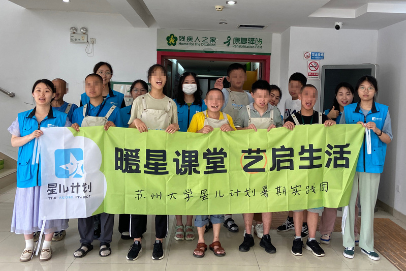 “暖星课堂,艺启生活”星儿计划团队带领39名志愿者,在“星艺空间”、斜塘街道康复驿站·淞潭社区“残疾人之家”等地,开展了线下服务活动。团队成员们在专业特教老师的帮助下,创新“艺术疗愈+社会融入”的模式,推出内容丰富多彩的暑期综合营项目,促进孤独症儿童的身心健康发展。