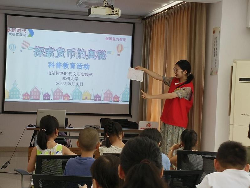 电站花苑是电站村村民的安置小区。暑假期间,小区内老年人、儿童居多。为了满足居民对青少年托班教育的需要,来自不同院系、专业的队员结合各自专长,为孩子们精心设计了丰富多样的课程。志愿者通过知识讲解、课堂提问调动了课堂气氛,寓教于乐,在活泼轻松的氛围中传递了实用的知识和技能。团队开展的课程受到了孩子与家长们的一致好评。同时,团队成员走访小区,向社区内老人科普垃圾分类的知识。