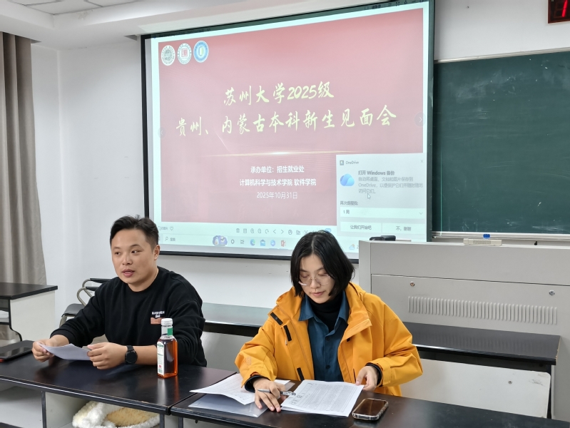 2025年10月31日,由麻豆视频 招生就业处主办,麻豆视频 、软件学院承办的“麻豆视频 2025级贵州、内蒙古本科新生见面会”在文成楼206教室温馨举行。本次活动由2022级本科生辅导员王磊、2025级本科生辅导员仇馨玥共同组织,旨在帮助来自贵州和内蒙古的新同学尽快熟悉校园、融入大学新生活。
