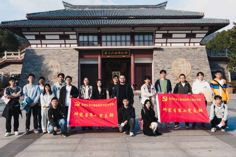抵达孙武文化园南门后,全体人员在鲜红的党旗下庄重合影,定格下计科院党员研究生朝气蓬勃、昂扬向上的精神风貌,更凝聚起“听党话、跟党走”的思想共识。随后,大家有序步入园区核心展区,在专业讲解与自主研读的深度融合中,系统探寻孙武生平事迹,细致梳理《孙子兵法》的思想脉络,深刻领会其中“奋进、创新、知行合一”的精神内核。