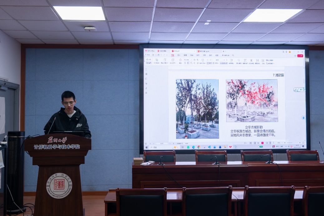 为积极响应“东吴映古城 姑苏再焕新”系列活动,计算机学院研究生会于11月上旬成功举办“码上寻冬,智绘姑苏——AIGC立冬踪迹诗画会”。活动以“实地记录到数字创作”为主线,引导研究生在感受姑苏冬韵的同时,运用流行的AI技术焕新古城文化,推动科技与文化的深度融合,吸引了众多同学的关注与参与。