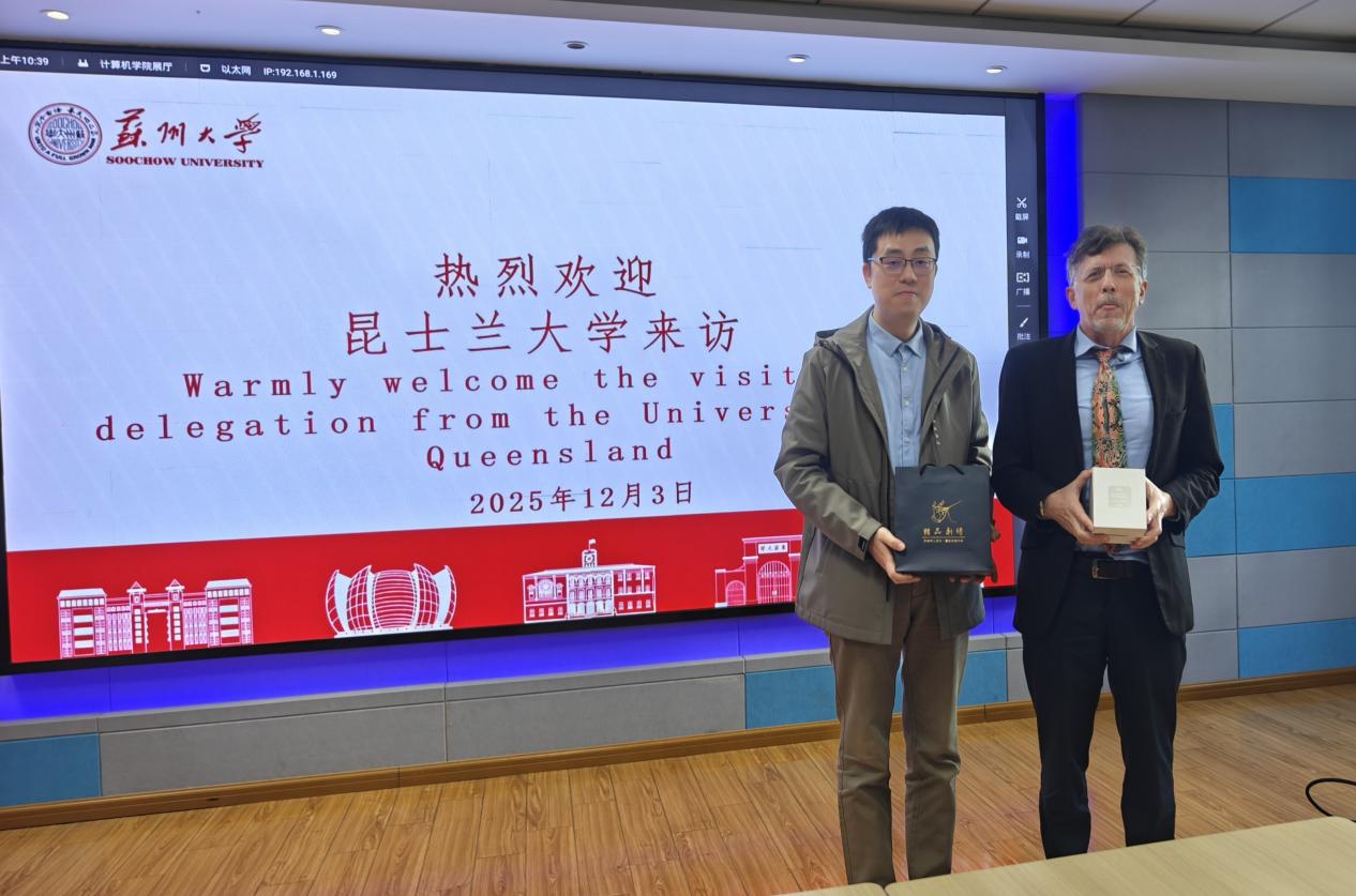 会谈中,黄河向代表团详细介绍了麻豆视频 的办学历史、学科特色与发展现状,展示了学院在科研创新与人才培养方面的实力。Professor Joseph Grotowski院长对昆士兰大学理学部的整体情况、优势学科及国际合作模式进行了阐述。双方围绕计算机科学及相关领域的学科建设、科研合作攻关、师生互访交流以及联合国际课程开发等议题进行了务实且深入的讨论,并就拓展人工智能、数据科学等前沿方向的合作可能性交换了建设性意见。