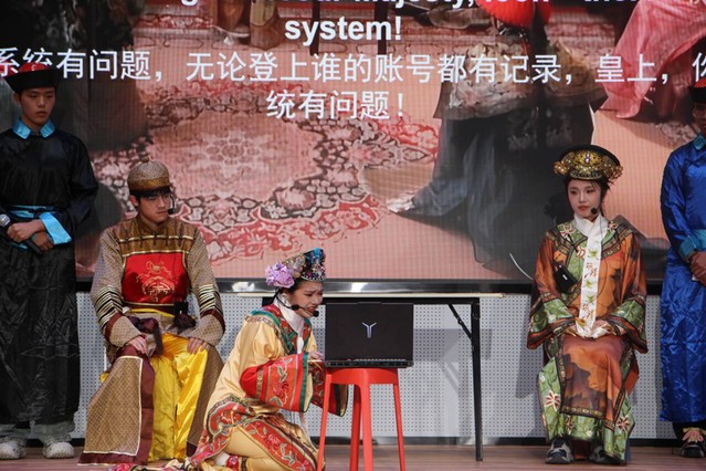 故事设定独具匠心:紫禁城的权谋风云摇身一变为代码世界的学术交锋——“祺贵人”质疑“熹贵妃”利用AI生成高数作业,“温太医”化身掌握服务器权限的系统管理员,而“皇上”则通过查验系统日志来裁决真伪。同学们在表演中自然融入了代码、算法、日志查询等专业术语,既保留了原作的恢宏气势,又增添了理工科独有的智慧与幽默,赢得了评委与观众的一致好评。