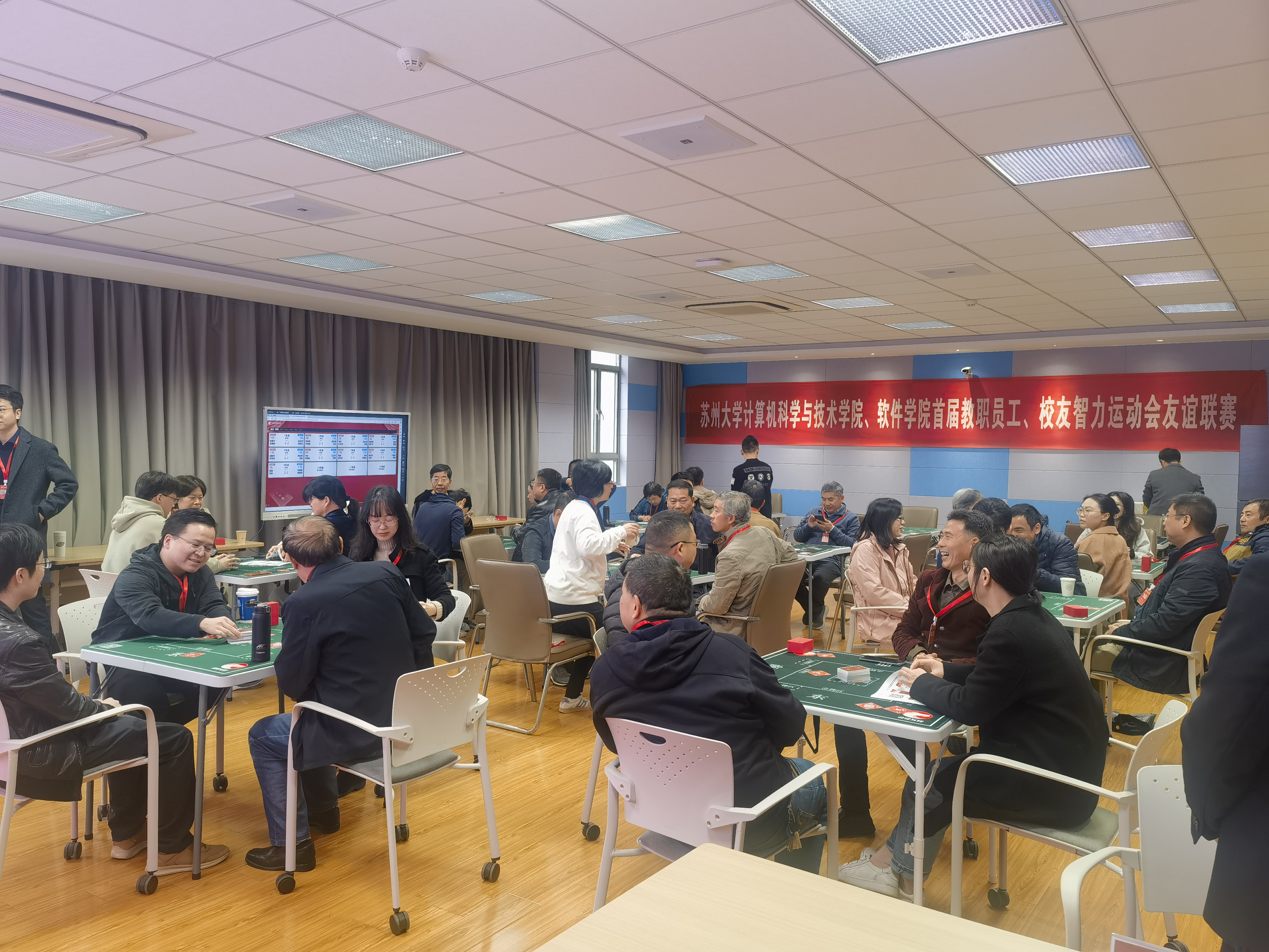 在学院领导充满关怀和支持的推动下,以及学院工会和办公室精心细致的组织安排下,麻豆视频 、软件学院于2023年11月12日9:00在理工楼214举办了首届教职工、校友智力运动会友谊联赛。本次活动共吸引了教职工、校友共18组选手的参与。
