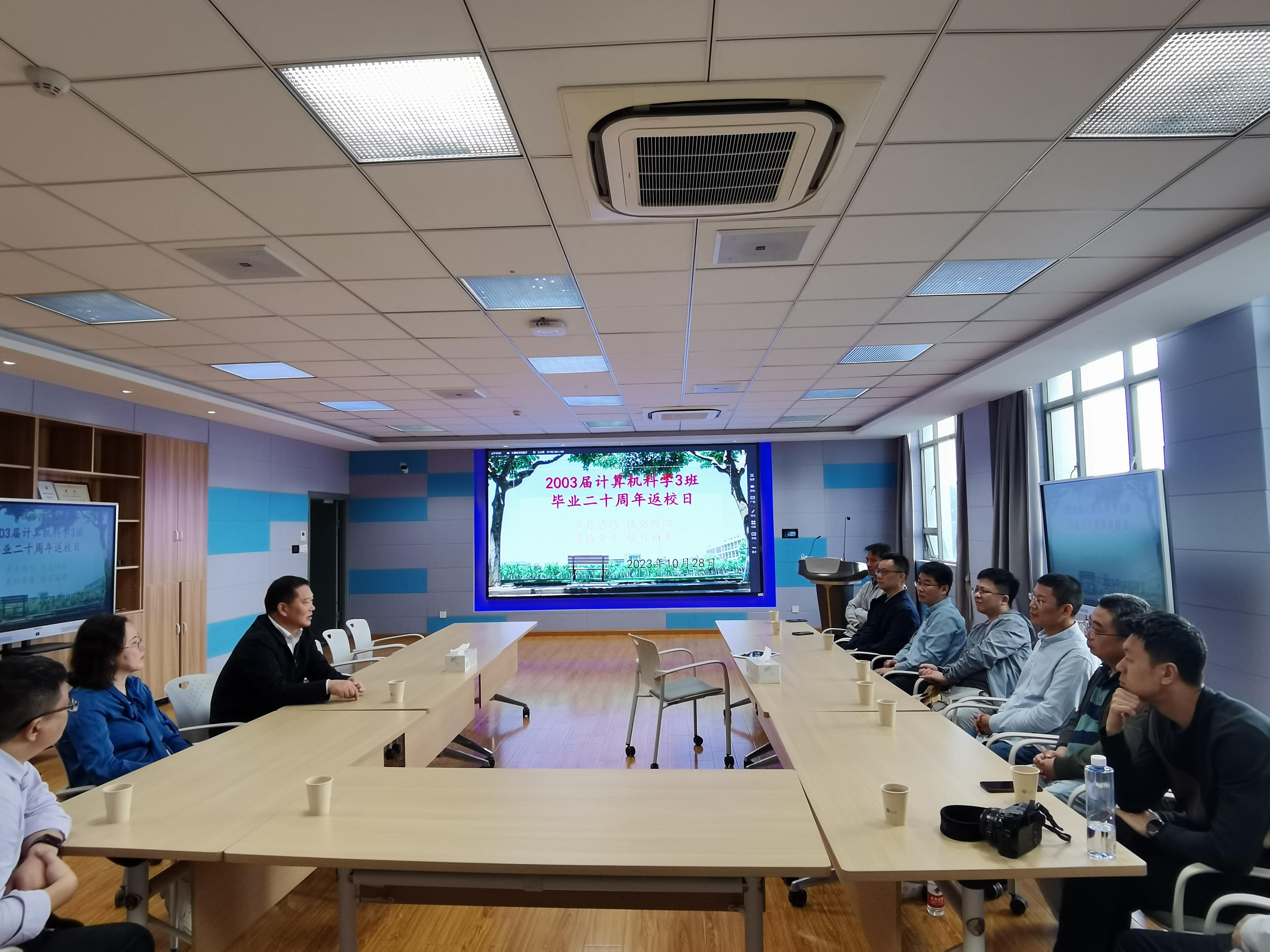 2023年10月28日,2003届计算机科学3班正值毕业二十周年。这一特殊时刻,理工楼214会议室汇聚了班级的部分校友,他们从周边城市赶来,再次踏上麻豆视频 校园的土地,举行了一场毕业二十周年返校座谈会,以庆祝友情、成就和回忆的二十年。本次活动,麻豆视频 党委书记胡新华老师、软件学院副院长,分管校友工作俞莉莹老师一起参加了校友座谈会。