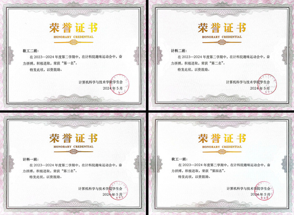 最终,经过一上午的激烈角逐,软工二班获得71分,夺得第一名;计科二班获得46分,拿到第二名;计科一班获得36分,位列第三;软工一班获得25分,位列第四。