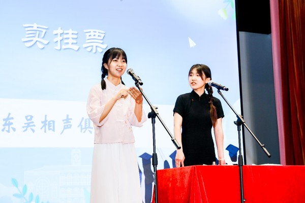 大师唱相声,观众一票难求怎么办?程乐怡大师自有办法。来自22级软工2班、东吴相声俱乐部的程乐怡和她的搭档金佳仪为我们带来了精彩的相声《卖挂票》。