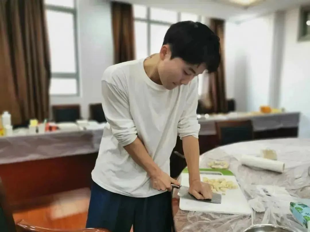 同年级、不同专业的同学虽然第一次见面,但是大家相谈甚欢。接下来李书记拿出事先准备好的面剂子和擀面杖教大家如何手动擀饺子皮,并且让大家都体验一下动手的乐趣。随后大家用自己擀的饺子皮包饺子,体会到劳动的快乐。