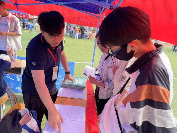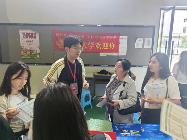 在各高中咨询会现场,老师们认真布置宣传展位,张贴醒目的宣传横幅、海报,吸引了众多考生与家长前来咨询。老师们结合历年考生分数位次、专业意向、招生计划等对学生进行一对一细致的志愿填报指导,耐心解答考生以及家长们的疑问,获得了广大考生以及家长的一致好评。
