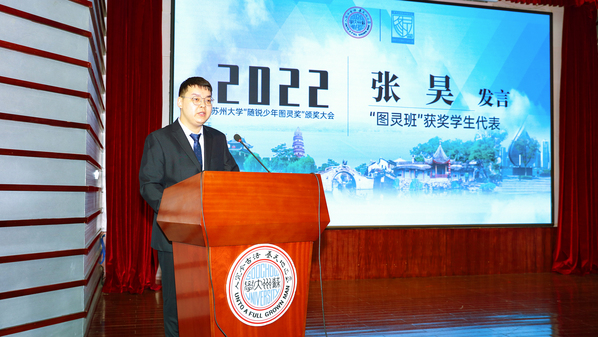 2019级图灵班张昊同学作为获奖学生代表发言。在讲话中,他结合自身三年在图灵班的成长经历,指出“图灵班”是理想信念的领航站、是自主学习的大课堂、是科研创新的训练营,他将继续保持刻苦钻研、勇往直前的“图灵班”精神,牢记青春向党、不负人民,争做复兴栋梁、强国先锋。