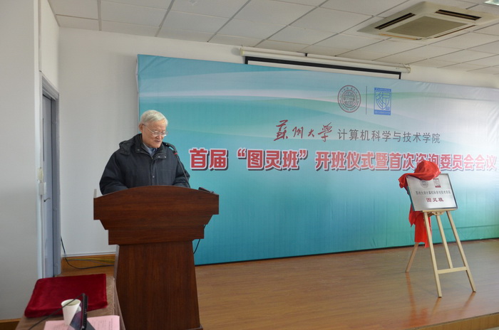 李凡长强调了创办图灵班的宗旨。他指出,为瞄准世界计算机科学发展的前沿,建设起一流的计算机学科,培养基础扎实、视野开阔、知识水平高、创新能力强的高水平拔尖人才,学院决定成立名为“图灵班”的教改试点班。此外,李凡长还介绍了图灵班的组建情况,对陆汝钤院士不顾年事已高,热忱关心开班进程表示衷心感谢。