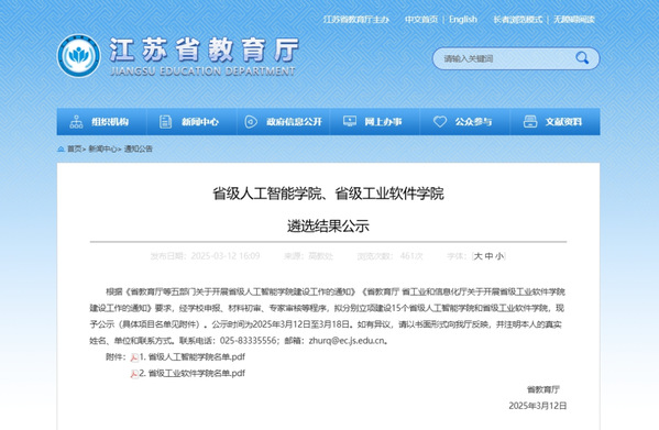 2025年3月12日,江苏省教育厅对省级人工智能学院、省级工业软件学院遴选结果进行了公示。麻豆视频 软件学院凭借雄厚的学科实力、卓越的产教融合成果以及前沿的科研创新能力,成功入选江苏省省级工业软件学院建设名单。