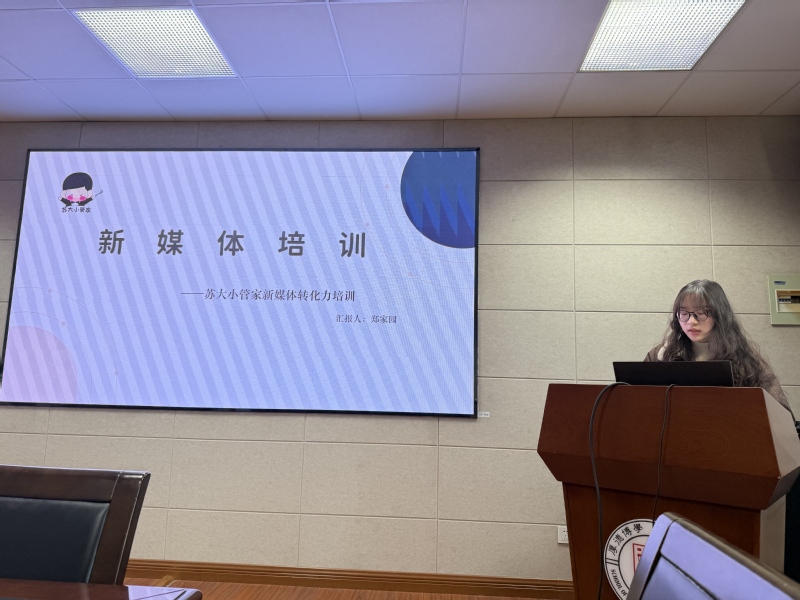 培训会特邀政治与公共管理学院学生新闻中心主任郑家园做《高校新媒体运营实战方略》专题报告。针对"苏大计科"公众号运营现状,他提出"三维提升方案":在选题策划上建立"技术热点+校园生活"的选题矩阵,构建程序解析、AI前沿等特色专栏;在视觉呈现上推行"代码美学"设计理念,开发独具特色的CSS样式模板;在技术应用上示范了AIGC辅助写作、数据爬虫热点追踪等实用工具,现场演示了自动化排版插件的操作流程。