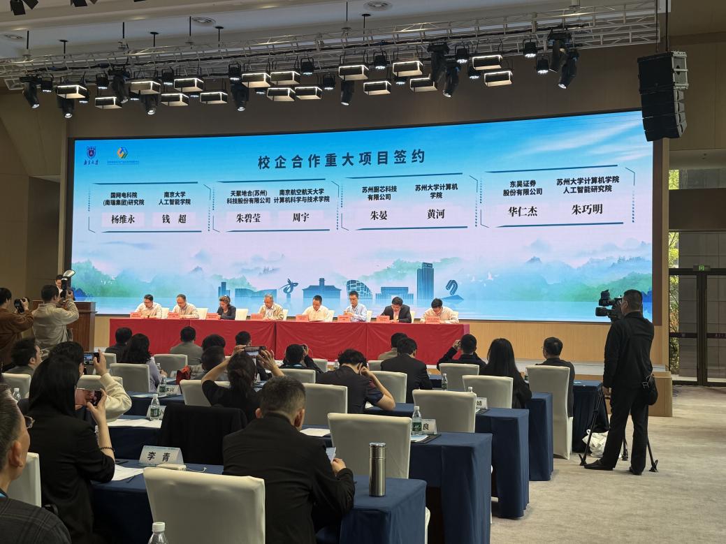 大会同步举办了校企合作签约仪式,黄河副院长代表学院与苏州厨芯科技有限公司签署合作协议,双方将共建联合实验室,聚焦商用厨电设备的故障预测、能耗优化等关键技术研发,推动餐饮行业智能化升级。朱巧明教授代表学院与东吴证券股份有限公司签署合作协议,未来双方将在科研成果转化、人才培养等领域开展长期合作,并协同开发基于区块链技术的供应链金融风控系统,助力苏州数字金融高地建设。
