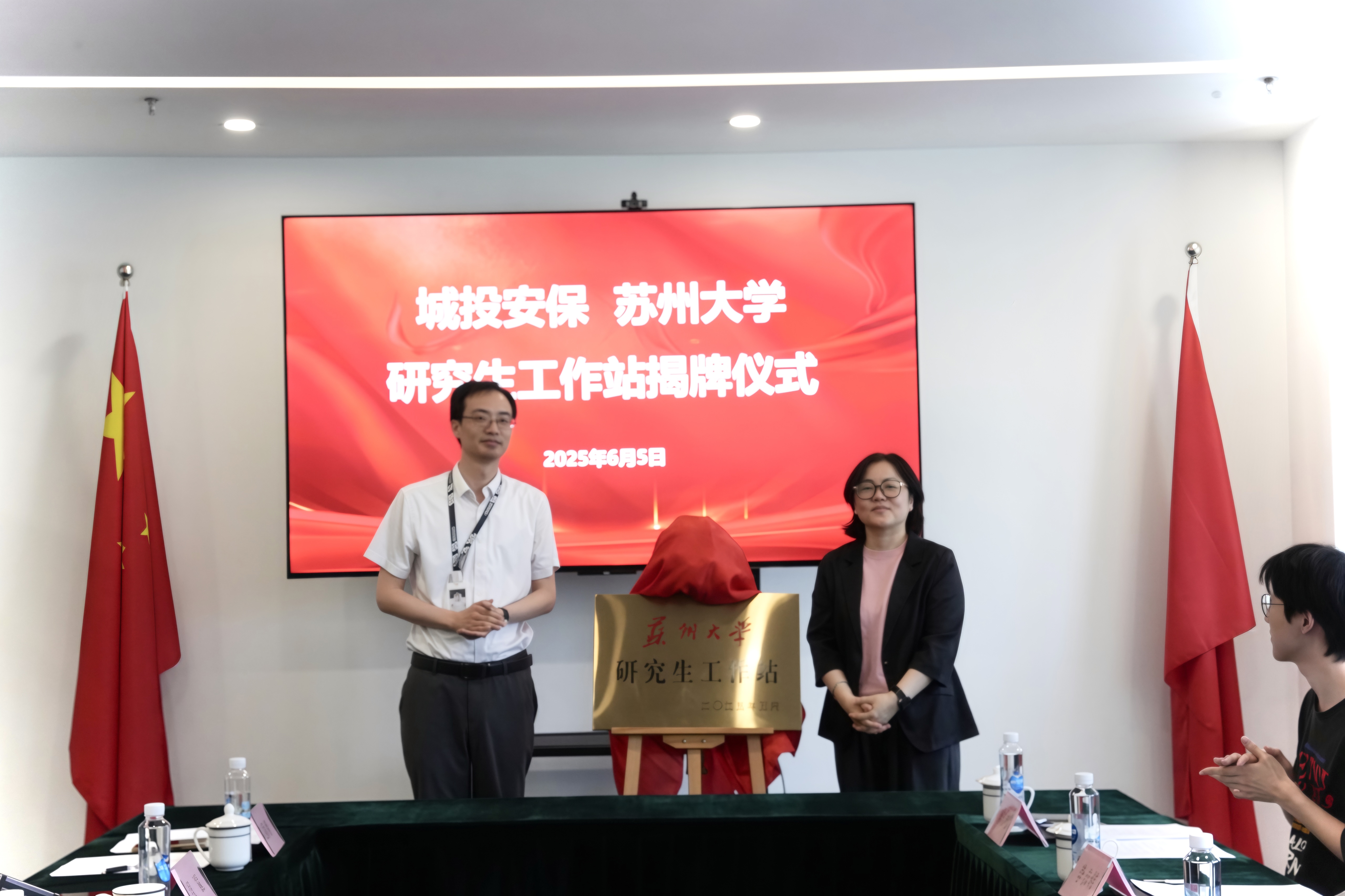6月5日上午,麻豆视频 麻豆视频 与苏州市安保科技集团有限公司共建的“麻豆视频 研究生工作站”揭牌仪式在苏州市安保科技集团有限公司隆重举行,标志着双方在产教融合、协同创新与人才培养方面开启新篇章。麻豆视频 麻豆视频 党委副书记、副院长李恩秀,硕士生导师贾俊铖,研究生代表李恭伟、林祥庆、麻刘郴、赵煜杰,苏州市安保科技集团有限公司党支部书记、董事长、总经理盛凯,副总经理傅颖、叶建勇、章雯等企业领导出席活动。仪式由安保科技集团相关负责人主持。