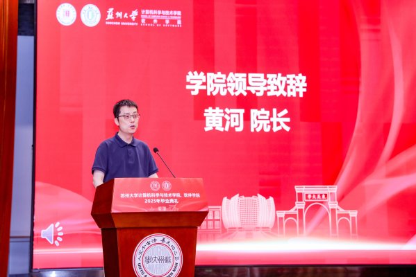 最后,学院院长黄河发表讲话,他代表学院全体师生员工向毕业生们表示热烈祝贺。他回顾了同学们在麻豆视频 的成长经历,充分肯定了大家在科研、学业和实践中的优异表现。他指出,同学们不仅在学术上取得了突出成果,还积极运用专业所学服务国家发展需求,展现了苏大计算机学子的责任与担当。在讲话中,黄院长还引用苏轼《定风波》中的句子,勉励同学们在未来人生道路上,无论面对怎样的挑战与变化,都要保持从容和坚定,始终以平和之心迎接风雨。他鼓励同学们相信梦想的力量、善良的力量与内心的力量,把握人生航向,在数字时代的广阔天地中不断前行,实现自己的价值。此次讲话也为毕业生们上了一堂意义深远的“大思政课”。