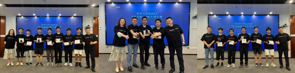 在颁奖环节中,谌一楠、俞莉莹、朱晓旭共同为在江苏省大学生程序设计大赛和麻豆视频 新生程序设计排位赛中表现优异的学生颁发获奖证书和奖品。颁奖结束后,获奖学生代表张天伦发言,表达了对思必驰集团的感谢,分享了自己参加ACM学习和竞赛的体会,并表示将继续努力,争取在未来的学习和竞赛中再创佳绩。