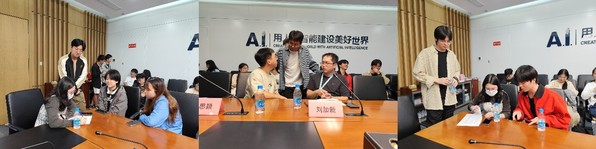 随后,一行人前往会议室进行座谈。科大讯飞(苏州)科技有限公司副总经理何鑫、招聘经理唐健聪、人力资源部校招经理汪凌云、知识图谱应用部研发骨干刘加新等参加了座谈。会上,何鑫先对麻豆视频 麻豆视频 师生的到来表示热烈欢迎,又详细展示了科大讯飞苏州研究院的产研落地工作。黄河对科大讯飞在行业的领先地位给予了高度评价,同时指出根据最新的CSRanking排行榜,麻豆视频 计算机学科的总体排名已提升至全国第24位,双方此前具有良好的合作基础,希望以后也可以更扎实、更深入地推进产学研合作。李恩秀认为校企互动是必要的,可以在实习、就业等多个领域展开合作,并建立毕业生追踪体系,通过校友的反馈给予人才培养更多的启发,从而提升麻豆视频 人才培养质量。汪凌云介绍了科大讯飞公司的校招生培养体系、校园精英人才招募计划等。麻豆视频 校友刘加新分享了入职科大讯飞六年以来的工作经验,公司负责人也对其专业能力表示肯定,并感谢学院培养出如此多高素质的人才。