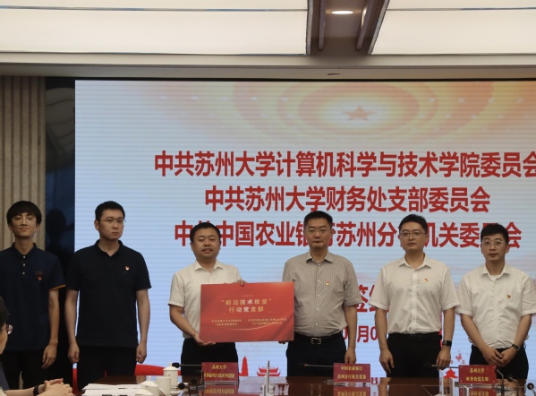 农行江苏省分行党委委员、副行长,苏州分行党委书记、行长吴忠辉在致辞中强调,此次共建是贯彻落实新时代党的建设总要求的创新实践。他指出:“三方党建结对,既是巩固深化全面战略合作的政治基石,更是以组织优势赋能新质生产力发展的关键举措。”期待通过常态化党建交流机制,将党的政治优势转化为发展动能,在人工智能赋能金融创新、智慧校园场景建设、科研项目联合攻关等领域深化合作,打造“高质量党建引领高质量发展”的银校合作典范。