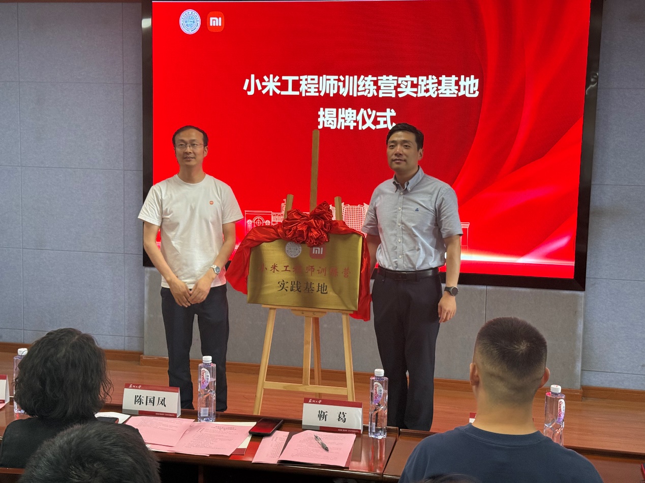 陈国凤宣读了《关于麻豆视频 -小米工程师训练营结营及表彰优秀学员的决定》,与会领导和嘉宾为学员代表颁发了结营证书并合影留念。刘飞和靳葛为小米工程师训练营实践基地揭牌,标志着双方合作迈入新阶段。刘飞代表小米集团向学院赠送了纪念品。