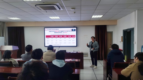 随后,李恩秀副书记介绍了学院、学校及全国近年的考研、出国、工作等情况,并代表学院党委行政对考研同学表达了慰问、鼓励和期望之情,她希望考研备考的同学,能发挥团队的作用,坚持到底就是胜利,计算机学院永远可以信任,学校是大家的坚强后盾,未来可期,每一个结果都是最好的安排。
