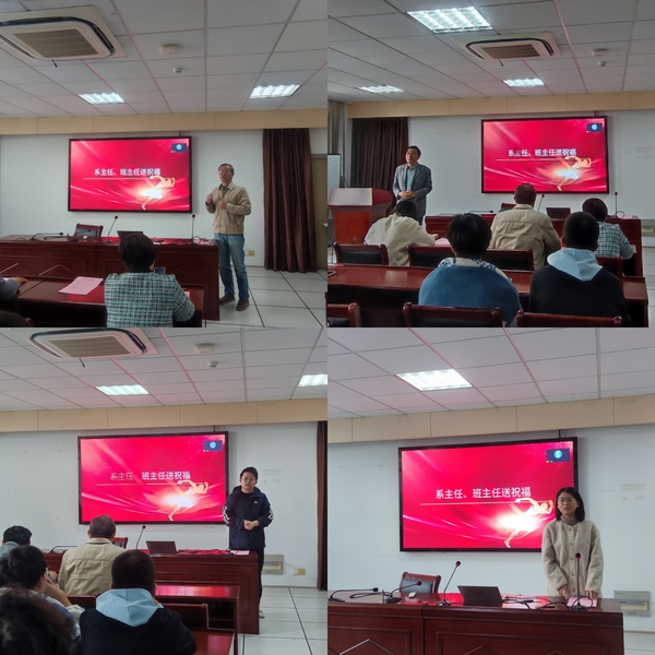 最后,全体系主任、班主任逐一上台为同学们送出鼓励与祝福。老师们或回忆自己几十年前的考研经历,或提供备考建议,或进行心理疏导,或送出暖心祝愿,或成为有力支持,都是期待同学们能够保持良好的状态,在考场上发挥出最好的水平。