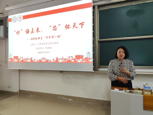 活动在庄严热烈的氛围中拉开帷幕。党委书记陈国凤以“‘计’语未来 ‘芯’怀天下”为主题,为全体新生讲授“开学第一课”。陈书记首先代表学院对新生们的到来表示热烈欢迎,并巧妙引用“苏超”足球赛的团队精神,寄语新生将研究生阶段视为一场需要团队协作、遵守规则、勇于拼搏的“高水平比赛”。她深刻阐述了本科教育与研究生教育的区别,指出研究生阶段是从“学会”到“会学”并“创造”的根本转变,是实现从知识接收者到知识创造者的飞跃。