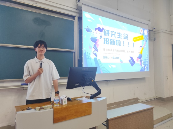 软件学院常务副院长赵雷围绕学院发展历程、研究生培养现状与培养过程节点作了系统介绍。他展示了学院在自然语言处理、人工智能、机器学习与图像处理、数据科学与工业软件、网络科学与工程以及嵌入式系统与网络空间安全等六大方向的科研布局,以及计算机科学学科进入ESI全球前1%、工程学前1‰的突出成就。赵院长鼓励同学们珍惜学院提供的优质平台,夯实科研基础,提升创新能力。
