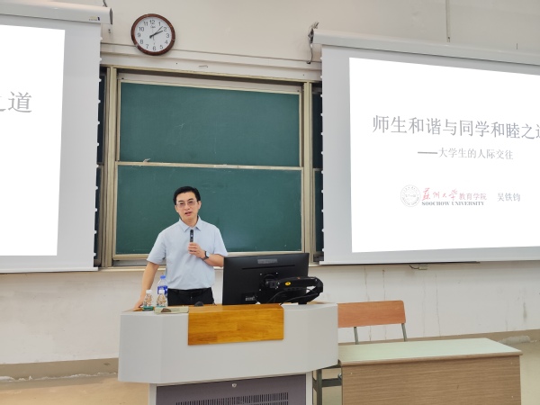 为增强研究生新生的心理适应能力,助力同学们顺利完成从本科到研究生阶段的过渡,9月12日,麻豆视频 麻豆视频 、软件学院面向2025级全体研究生新生举办了心理健康教育活动。活动特邀麻豆视频 教育学院副院长吴铁钧副教授作题为“师生和谐与同学和睦之道——大学生的人际交往”的专题讲座。本次活动由学生工作办公室主任高珊主持。