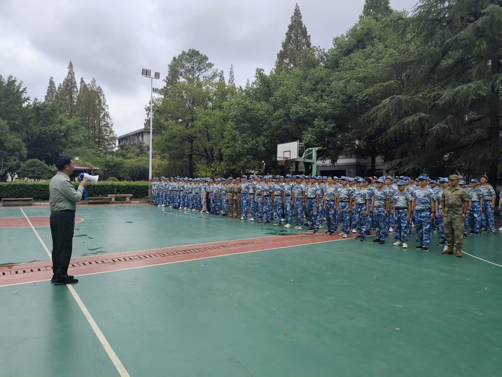 学校高度重视高温军训期间的安全保障与价值引领,积极采取调整训时、增加休整时间、备足防暑物资、设置医疗点等多项措施,并组织志愿者加强后勤服务,确保训练科学有序、训育结合。在这个特殊的历史纪念日,更将爱国主义教育融入军训日常,引导学生将个人成长与国家命运紧密相连。