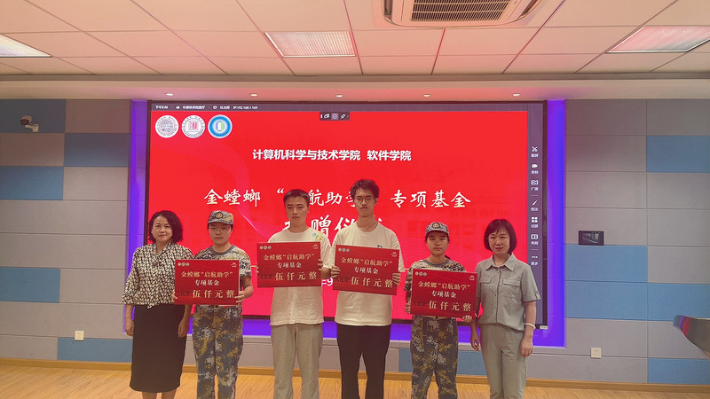 徐嘉在讲话中介绍了金螳螂集团的发展历程、行业成就及未来规划。她表示,金螳螂基金会自成立以来,始终以“回馈社会、传递爱心”为使命,持续十年开展“日行一善·日捐一元”慈善项目,将慈善精神融入企业文化。她分享了自己作为麻豆视频 校友的公益实践经历,鼓励获助同学努力钻研学业,不断提升专业能力,始终保持乐观自信的心态,勇敢面对成长路上的机遇与挑战。“计算机专业在人工智能时代大有可为,具有广阔的发展前景,希望同学们把握时代机遇,勇于探索与创新,在未来为社会发展贡献自己的智慧与力量。”徐嘉特别强调。