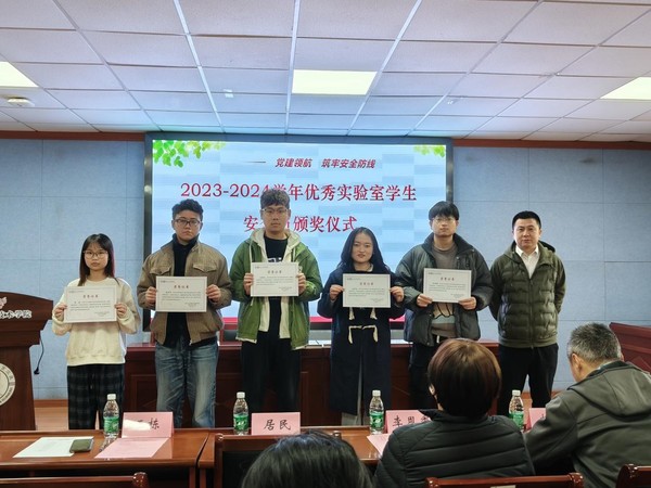 活动伊始,李恩秀宣读了2023-2024学年优秀实验室学生安全员表彰名单,并由王栋进行了颁奖仪式。这批优秀安全员在过去一年中凭借卓越的工作表现与无私的奉献精神脱颖而出,他们不仅是第一届的佼佼者,更是未来实验室安全管理的领航者,其榜样力量将激励更多安全员提升专业素养,共同推动实验室安全管理迈向新高度。