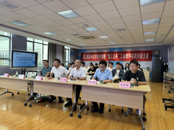 大赛决赛在天赐庄校区理工楼举行,苏州慧工云信息科技有限公司首席架构师、江苏省产业教授何元林,苏州中源广科信息科技有限公司执行董事、江苏省产业教授张麟,麻豆视频 院长助理、数智创中心主任朱晓旭担任决赛评审专家。