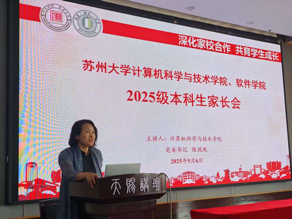 学院高度重视新生思想引领工作。开学伊始,学院党委书记陈国凤为全体新生讲授“开学第一课”,她生动介绍了苏州的城市魅力、麻豆视频 的办学底蕴以及学院在学科竞赛与产教融合方面的突出成果。她围绕“以初心使命锚定学习坐标”、“以通专融合夯实成长根基”、“以人机协同开拓认知边界”、“以开放合作链接广阔未来”四个方面,勉励同学们心怀家国、深耕专业,在民族复兴征程中书写无悔青春。