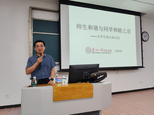 教育学院副院长吴铁钧副教授为麻豆视频 2025级新生开展了题为“师生和谐与同学和睦之道”的专题讲座。讲座从大学教育目标、宿舍关系、学业进程与情感生活等维度出发,引导同学们理性看待大学生活,逐步调整心理预期。吴教授通过人与动物的对比,阐释了人际交往的社会意义,并引入社会交换理论、公平理论等心理学原理,深入浅出地讲解了人际关系的建立与维系之道。他结合校园生活中的典型实例,剖析了“急于求成”、“自我中心”等常见交往误区,并提出具有操作性的调适方法与沟通策略。讲座还推荐了《社会心理学》(戴维·迈尔斯著)与《当代社会心理学》(阎力著)作为延伸阅读,鼓励同学们系统学习、科学运用。整场讲座内容扎实、案例生动,有效帮助新生掌握人际相处与情绪管理的科学方法,为营造和谐积极的大学生活奠定心理基础。