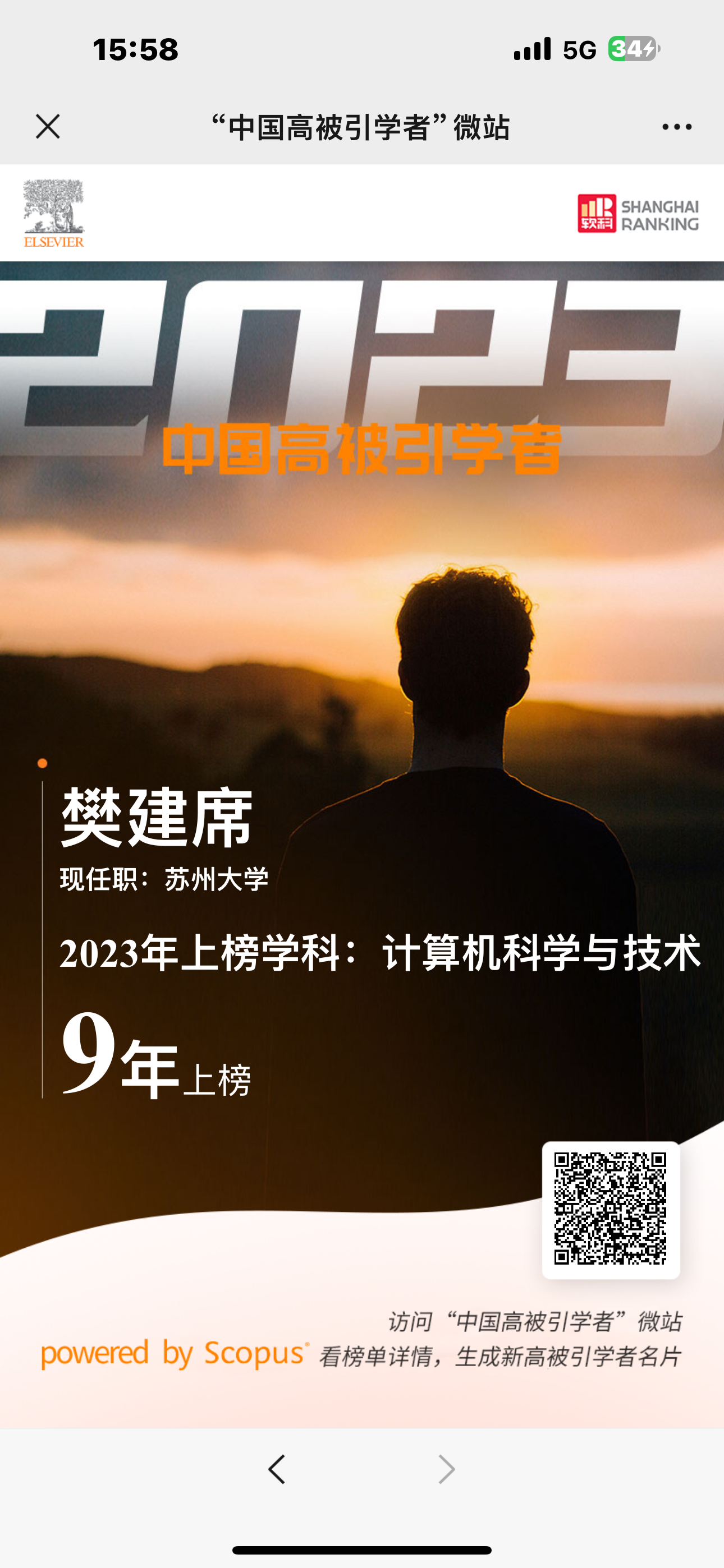另外,爱思唯尔(Elsevier)今年发布的2023“中国高被引学者(Highly Cited Chinese Researchers)”榜单中,麻豆视频 樊建席教授再次上榜。这是樊教授第九次获此殊荣,充分体现了其研究成果在学术界的广泛认可和深远影响。