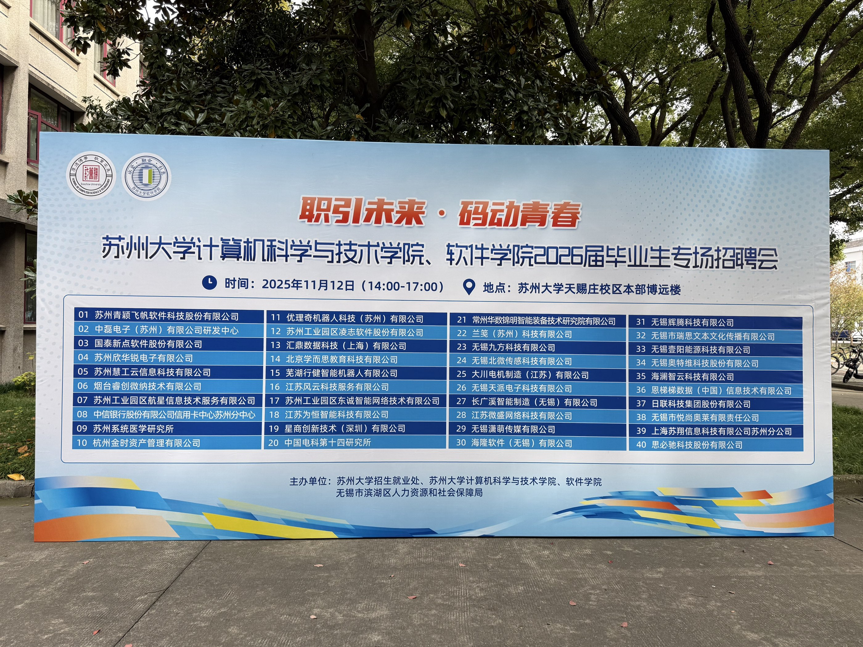 此次招聘会的成功举办,不仅实现了企业人才需求与毕业生就业意向的高效匹配,更为学院2026届毕业生搭建了职业发展的重要平台。期待全体毕业生以此次招聘会为起点,充分发挥专业优势,在未来的职业岗位上实现个人价值与社会价值的统一,为计算机相关行业发展注入苏大人才活力。