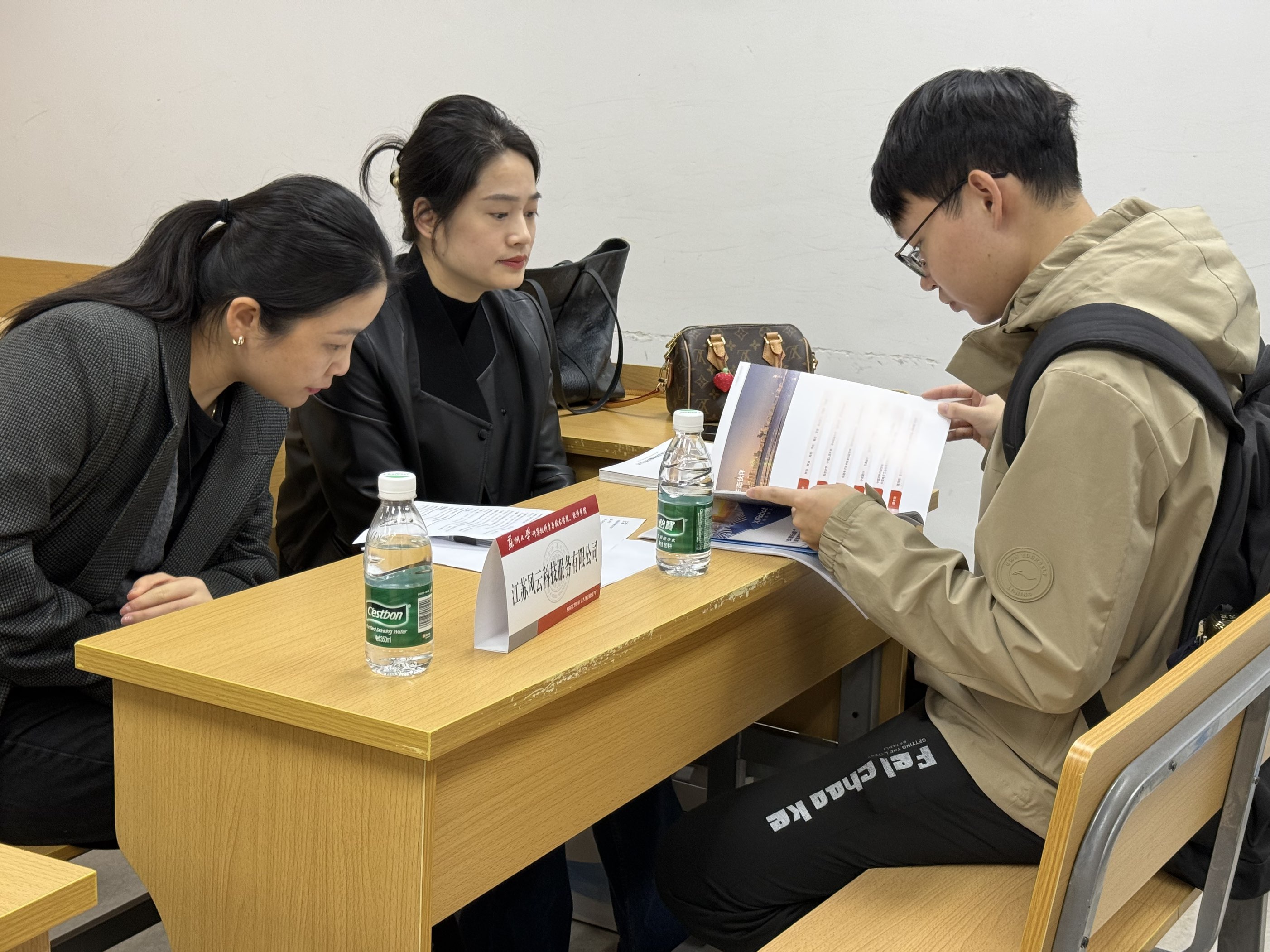 招聘会现场组织有序、氛围浓厚,各展位前聚集着咨询岗位、投递简历的毕业生。毕业生仔细研读招聘海报及宣传材料,围绕岗位专业要求、职业发展路径、薪酬福利等核心问题,与企业招聘负责人深入交流,展现出良好的专业素养与积极求职态度。各企业也积极推出引才举措:江苏风云科技服务有限公司人力资源专员通过一对一沟通了解毕业生能力与意向,对符合需求的简历进行重点标注;国家高新技术企业苏州青颖飞帆软件科技股份有限公司人力资源总经理表示,“公司对麻豆视频 计算机学院的毕业生认可度非常高,公司里有多位计算机校友已成长为公司高级骨干,这次招聘会公司也已初步筛选出一批潜在人才”。