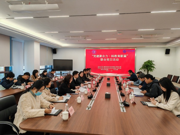 在随后举行的党建与业务融合座谈会上,姑苏实验室党总支书记于年中介绍了实验室整体发展概况,并分享了党建与业务深度融合的路径与经验。学院党委书记陈国凤系统介绍了学院发展近况、学科优势特色与人才培养成效。她指出,面对区域产业发展新需求,学院将持续拓展产学研合作资源,全面赋能师生成长与发展。在交流环节,双方聚焦人才共育、科研协同、资源共享等议题展开深入探讨,达成多项落地共识。