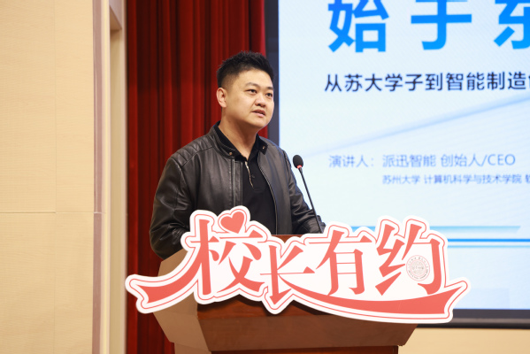 李游以“智能之‘派’,始于东吴”为题,分享了从苏大学子到智能制造领域开拓者的奋斗历程。他回顾了在校期间打下的扎实专业基础,以及与室友共同创业的初心,讲述了如何从产业一线发现问题、持续攻坚,带领派迅智能成长为国家级专精特新“小巨人”的创业实践。他强调,技术创新不仅源于理论探索,更源于对实际生产难题的洞察与破解。他还系统阐释了智能线边仓解决方案在赋能高端制造、提升产业效能方面的作用,并寄语学弟学妹筑牢专业根基、勇于迭代探索、保持好奇心与使命感,塑造属于自己的人生“核心算法”。