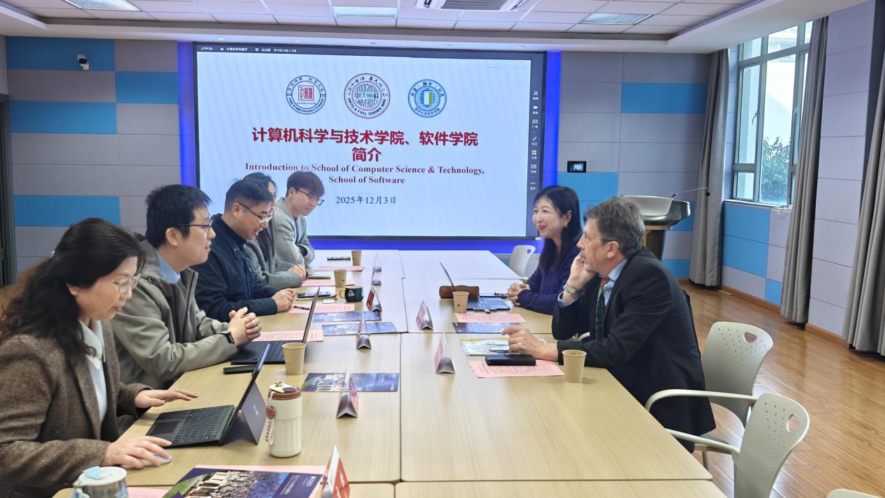 2025年12月3日上午,澳大利亚昆士兰大学理学部数理学院院长Professor Joseph Grotowski与国际处联络专员Angela Huang女士到访麻豆视频 。为高效对接合作资源,麻豆视频 与继续教育学院共同组织了一场平行交流会议,旨在深入探讨双方在计算机科学、人工智能等前沿领域的多层次合作机遇。麻豆视频 院长黄河、副院长居民、学院国际项目负责人李映,继续教育学院国际项目专业主任王岩、国际培训学院院长助理葛露、合作交流中心科员车侹骏共同参加了会谈。