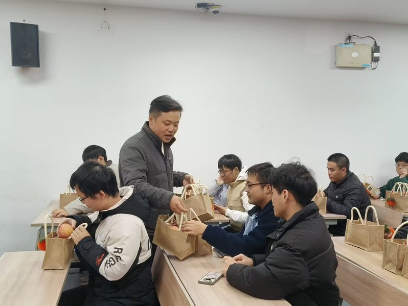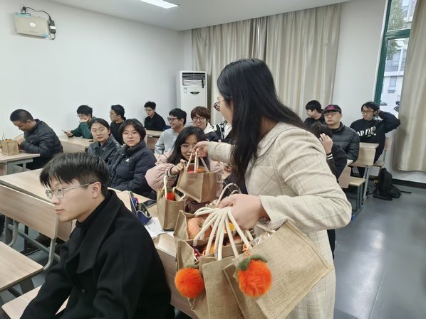 随后的慰问品发放环节将现场气氛推向高潮。学院领导与老师亲手为每位学子送上精心准备的“考研暖心大礼包”,其中包含寓意“心想事成”的吉祥挂件、补充能量的食品、御寒暖贴以及写满寄语的手写明信片。每一份礼物都承载着学院的深情祝福与殷切期待,让学子们在寒冬中倍感温暖。