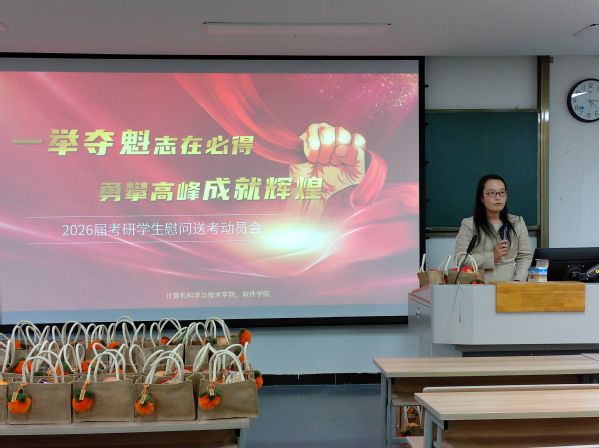 高珊结合计算机与软件领域发展趋势,深入阐释了继续深造对个人成长与行业发展的重要意义,指出考研不仅是学历的提升,更是对专业视野、科研能力和意志品质的全面锤炼。她鼓励同学们树立信心、迎难而上,在最后阶段尤其要稳住心态、科学规划,学院始终是同学们的坚强后盾,未来将持续做好服务保障,助力大家以最佳状态步入考场。