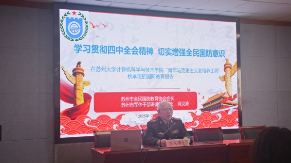 为深入贯彻落实党的二十届四中全会精神,扎实推进国防教育走深走实,12月3日下午,麻豆视频 在理工楼504教室举办“国防教育”信仰公开课。活动特邀苏州市全民国防教育协会会长、军休干部讲师团团长肖汉涛大校主讲。学院党委书记陈国凤,党委副书记、副院长高珊,团委副书记徐超,校“青马工程”学员代表及学院学生骨干共同参加。活动由2023级本科生鲍科臻主持。